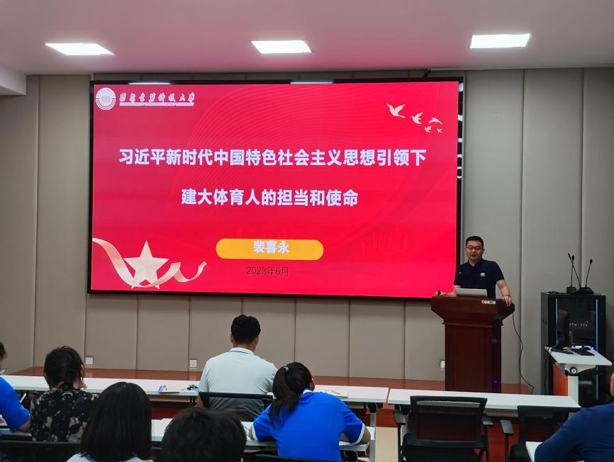 为推动学习贯彻习近平新时代中国特色社会主义思想和党的二十大精神,引导学院学生党员凝心铸魂强党性、锤炼品格建新功,6月20日,雷竞技RAYBET党总支书记裴喜永以《习近平新时代中国特色社会主义思想引领下建大体育人的担当和使命》为题,讲授主题教育党课暨学生党员党课。