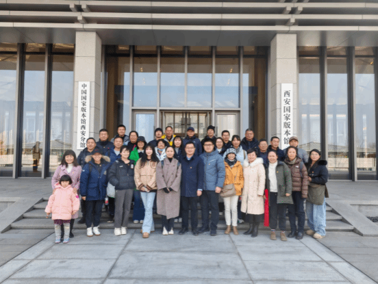 西安国家版本馆是党中央批准实施的重大文化工程,由中国工程院院士、中国建筑西北设计研究院总建筑师张锦秋领衔设计,以大气磅礴的汉唐气度扎根三秦大地,是人类文明的重要文化财富宝库,充分体现了我们党传承发展中华文化的高度自觉,体现了我们党主动传承中华文明的责任与担当。在讲解员带领下,党员们详细了解西安国家版本馆“一总三分”的总体布局和西安分馆(文济阁)的建设规划、设计理念、建筑特点、收藏版本等情况。馆内分为丝绸之路文化展区、中华文化展区、版本文化展区、数字文化展区等多个展区,展示了从古至今的各种版本形式,包括卷轴、木版水印、连环画、宣传画、电影电视剧、音像制品等,涵盖了文学、艺术、科技、政治、经济、军事等各个领域;先后参观文济阁通顶书墙及西安版本馆结合陕西文化特色精心设置的两个展览,《赓续文脉 踔厉前行—中华文化经典版本展(西部篇)》和《楮墨遗珍 万里同风——丝绸之路版本展》。