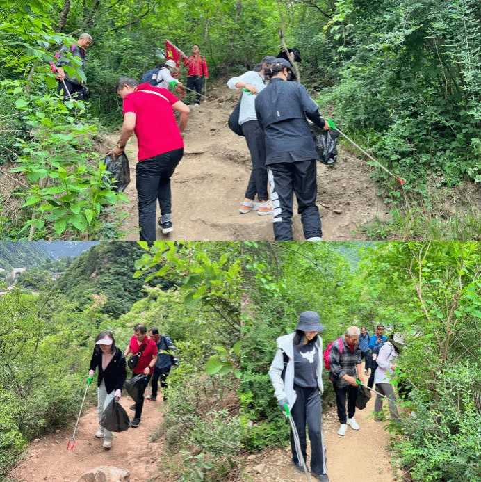 随后,全体党员有组织地开展集体行动,沿着圭峰山的山间步道,仔细清理沿途垃圾,包括食品包装袋、饮料瓶、废纸等。大家不怕脏、不怕累,不放过任何一个卫生死角。在清理过程中,党员们还积极向过往游客宣传环保知识,倡导文明出行,引导游客共同爱护秦岭的生态环境。不少游客深受感染,主动加入到环保行动中来。
