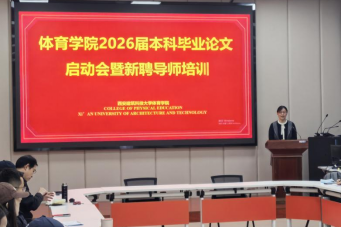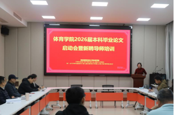 会议上,毕业论文工作负责人李峰老师围绕毕业论文的关键环节,就2026届本科毕业论文工作进行了全面说明:提出立题严守科学可行性原则,对接体育领域前沿与实践需求,兼顾学术价值与应用导向,契合专业培养目标及学生能力开展指导工作;同时明确各阶段时间节点,强调做好日常指导与考勤记录,引导监督学生严守学术诚信底线。