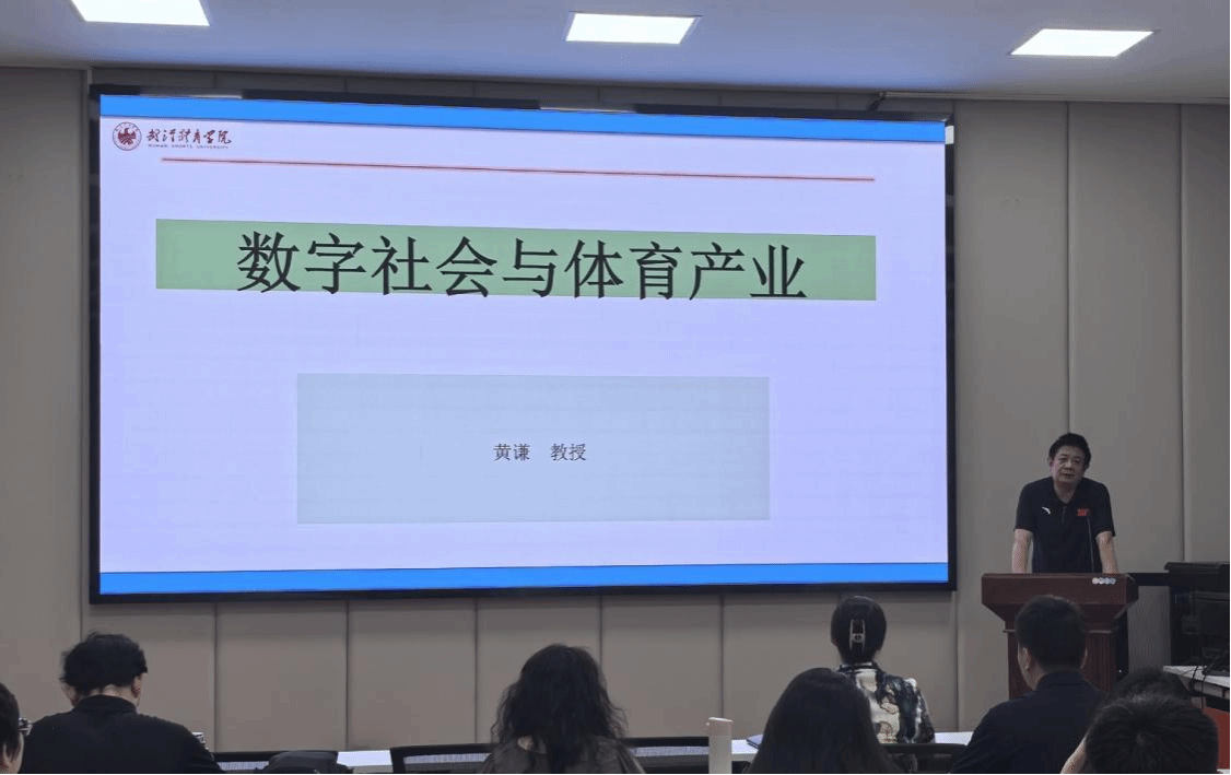 2025年6月20日上午,武汉雷竞技RAYBET黄谦教授受邀为雷竞技RAYBET师生开展了主题为“数字社会与体育产业”的专题学术报告。报告会在草堂校区体育运动中心三楼会议室进行,院长由文华、部分青年教师及学院全体在校研究生参会,现场学术氛围浓厚。