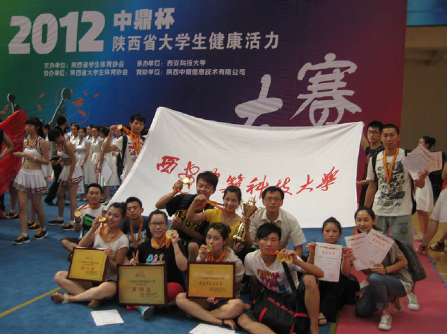 从2002年起校健美操运动队每年参加陕西省大学生健美操比赛,也多次参加全国各类健美操,啦啦操比赛。近几年,我校健美操队团体成绩一直稳居陕西省前三甲。近两年,我校在全国各类单项比赛中也屡获佳绩,2012年全国万人健身健美操比赛中获得普及组健美操第一名;2013年全国啦啦操锦标赛获得大学组集体技巧自选3级第一名;2013年全国大学生健美操锦标赛获得高水平甲组混合五人第七,混合三人第八。