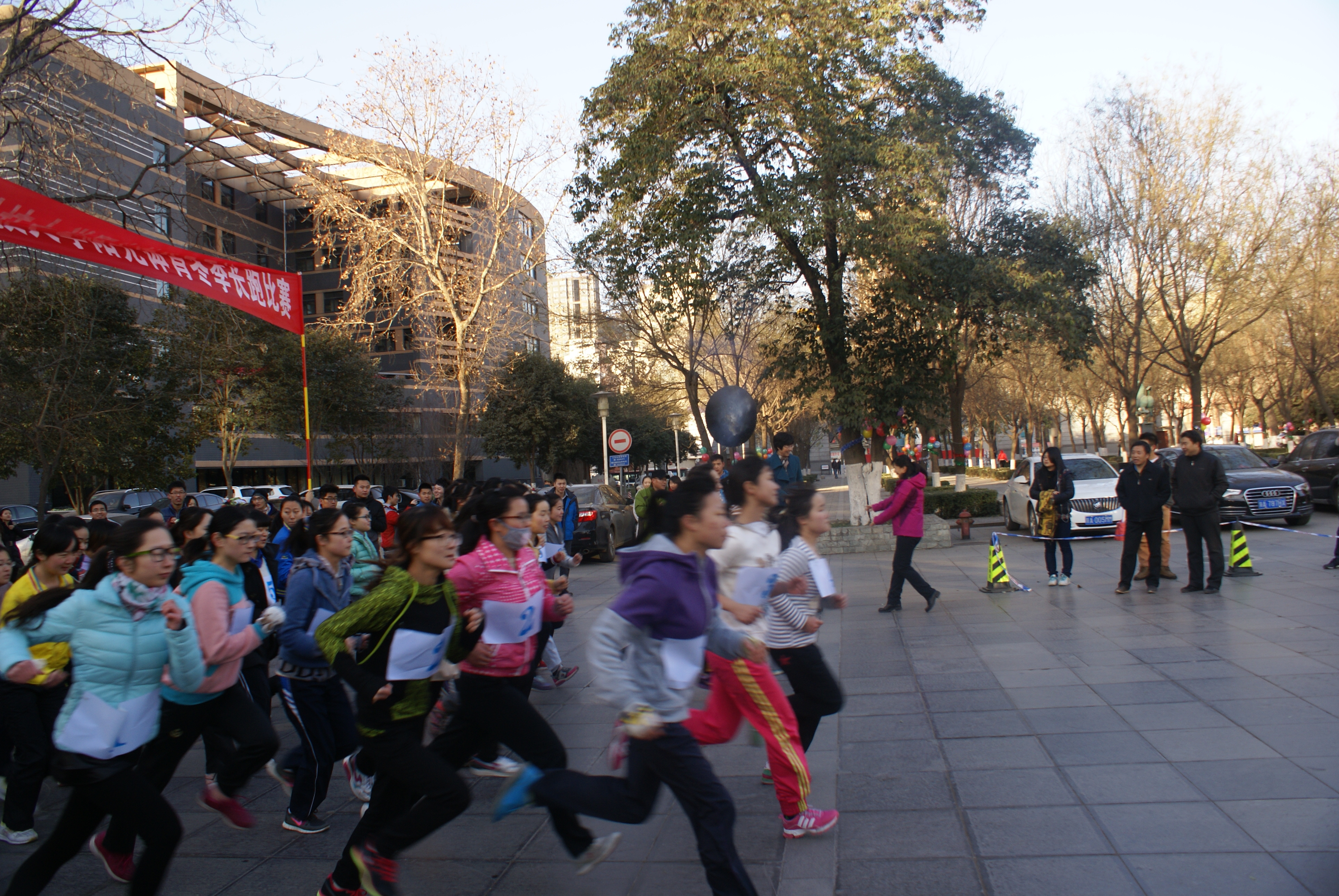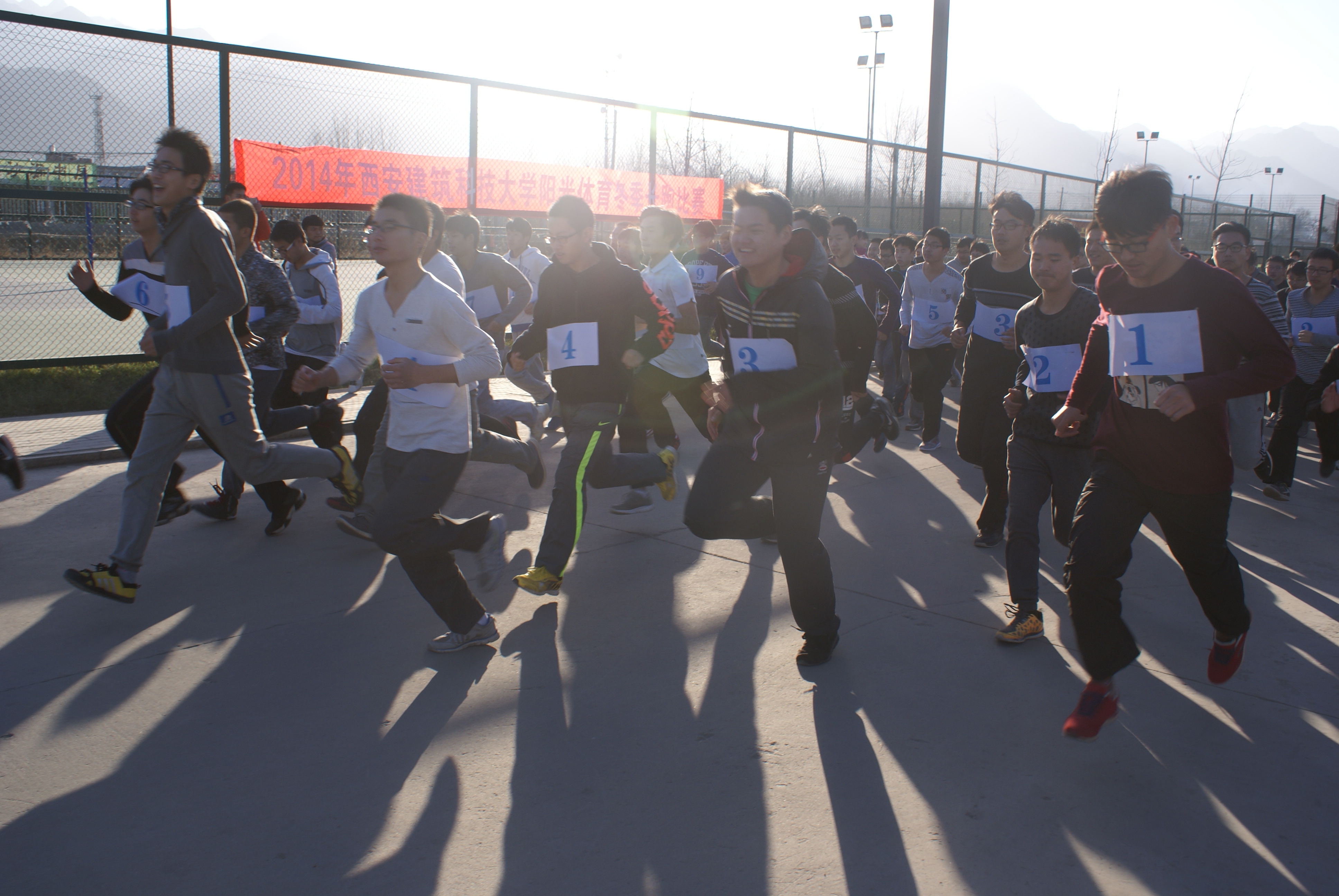 为进一步推动我校阳光体育运动,增强学生体质,2014年12月21日在上、下午两个单元分别在我校雁塔校区以及草堂校区举行冬季越野长跑比赛。
