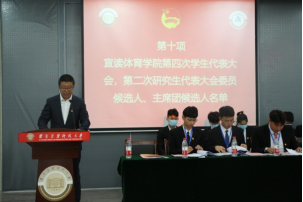 随后,辅导员成汉轩老师向各位代表汇报大会的筹备情况,介绍第四届学生委员会和第二届研究生委员会委员候选人预备人选、主席团候选人预备人选情况。团委组织部部长王薇向大会作代表资格审查报告,学生会副主席王先松宣读本次大会选举办法以及总监票人、监票人名单、总计票人、计票人名单。团委书记邱宁宣读第四次学生代表大会,第二次研究生代表大会委员候选人、主席团候选人名单。
