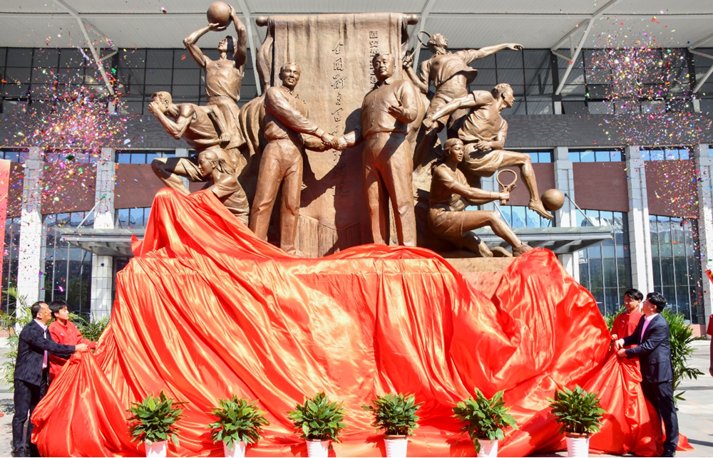 10月15日上午,在“全国体育运动红旗院”授旗65周年之际,雷竞技平台在草堂校区体育运动中心南侧举行了红旗院精神主题雕塑揭幕仪式。国家体育总局体育文化发展中心党委书记、主任,中国体育博物馆馆长黄金,西安建大党委书记朱晓渭,党委副书记、纪委书记、省监委驻校监察专员陈琪,副校长牛荻涛、董群雁、王怡出席。仪式由雷竞技RAYBET院长由文华主持。