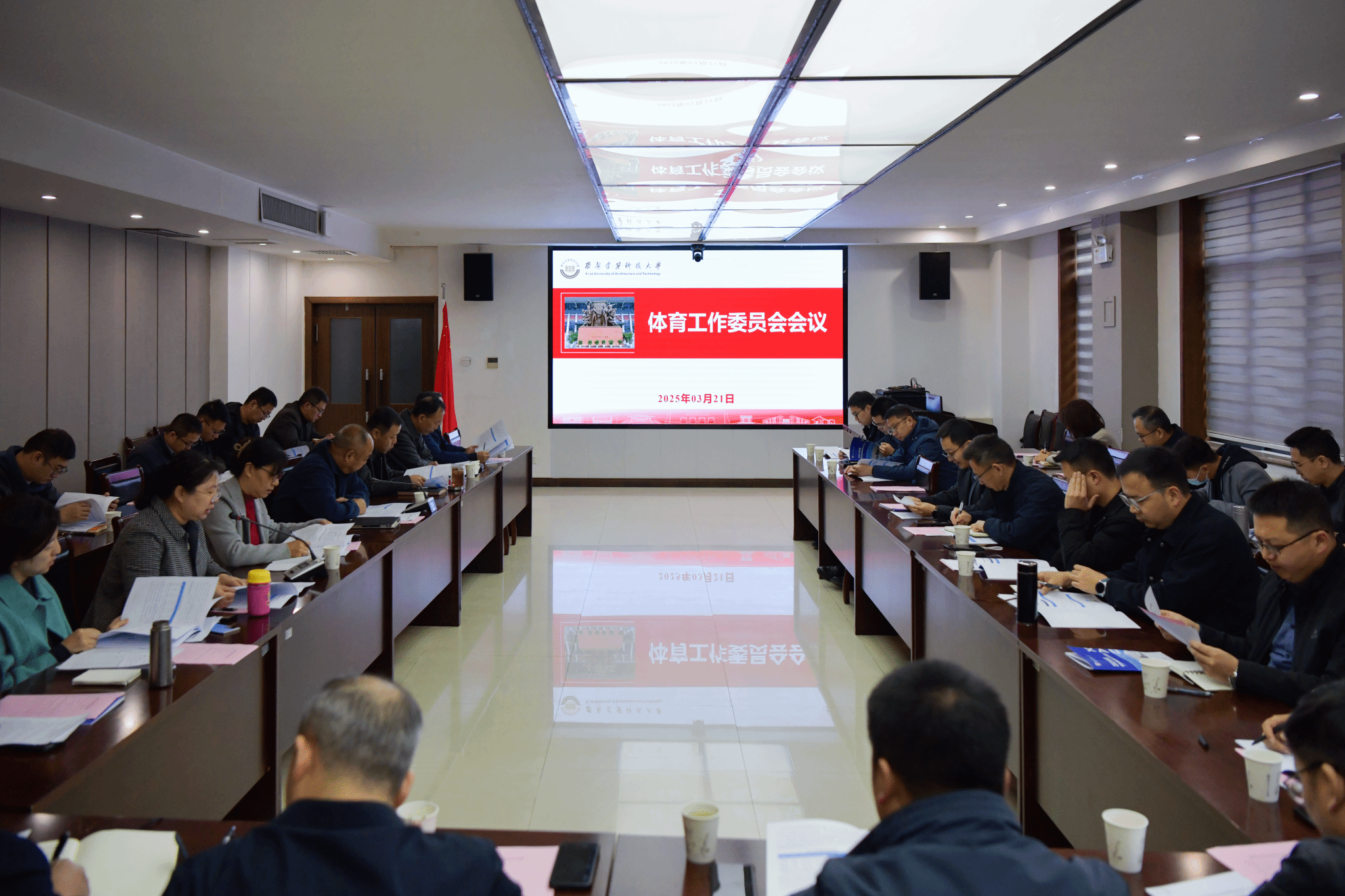 3月21日上午,我校在行政楼负一楼会议室召开2025年体育工作委员会会议,副校长董群雁主持会议并讲话,校体育工作委员会全体委员参加会议。