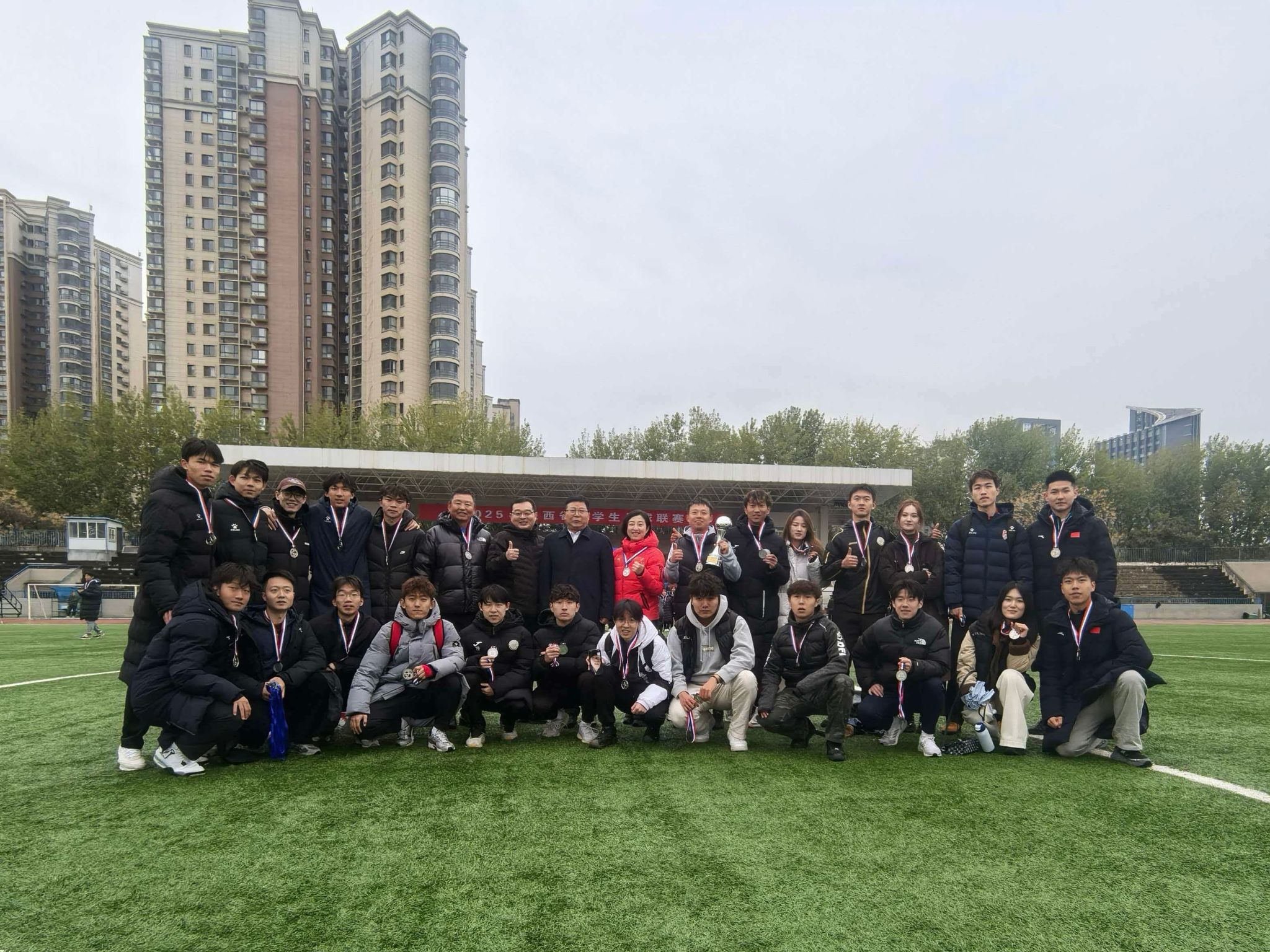 12月12日,2025年陕西省大学生足球联赛在陕西师范大学(长安校区)圆满落幕。本届赛事由陕西省教育厅、陕西省体育局联合主办,陕西省学生体育协会、西安邮电大学、陕西师范大学共同承办,吸引了全省69所高校96支队伍2400余名运动员同台竞技。我校男子乙组足球队在一级联赛中夺得亚军。