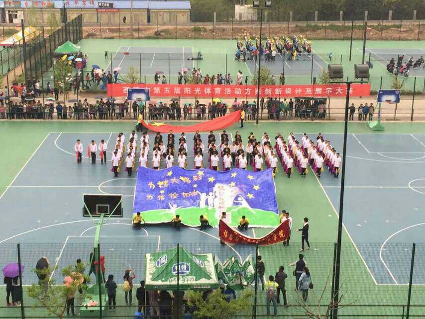 为广泛宣传健康、快乐运动理念,激发大学生运动创新能力,我校于2015年4月18日分别在草堂校区篮球场和幸福校区田径场上举行了一场展现我校学生阳光、活泼以及充满青春活力的体育活动创新设计展示大赛。