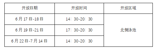 为满足校内师生课余游泳锻炼需求,结合游泳体育教学安排,草堂校区华诚博远游泳馆定于2023年6月17日起对校内师生开放,具体安排如下: